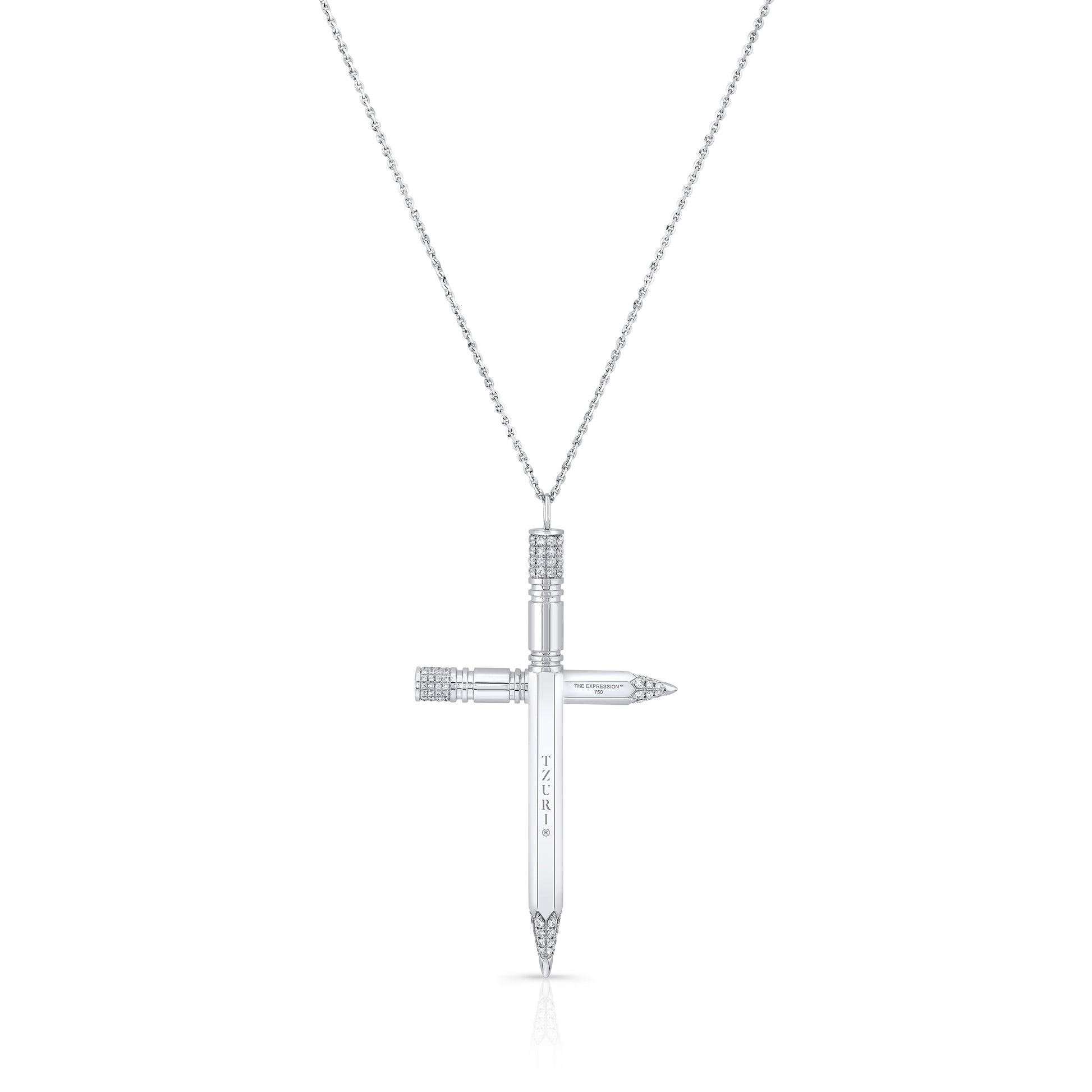 An oversized rendition of The Expression Collection® cross. Made in 18k white gold with fine white pavé set diamonds.