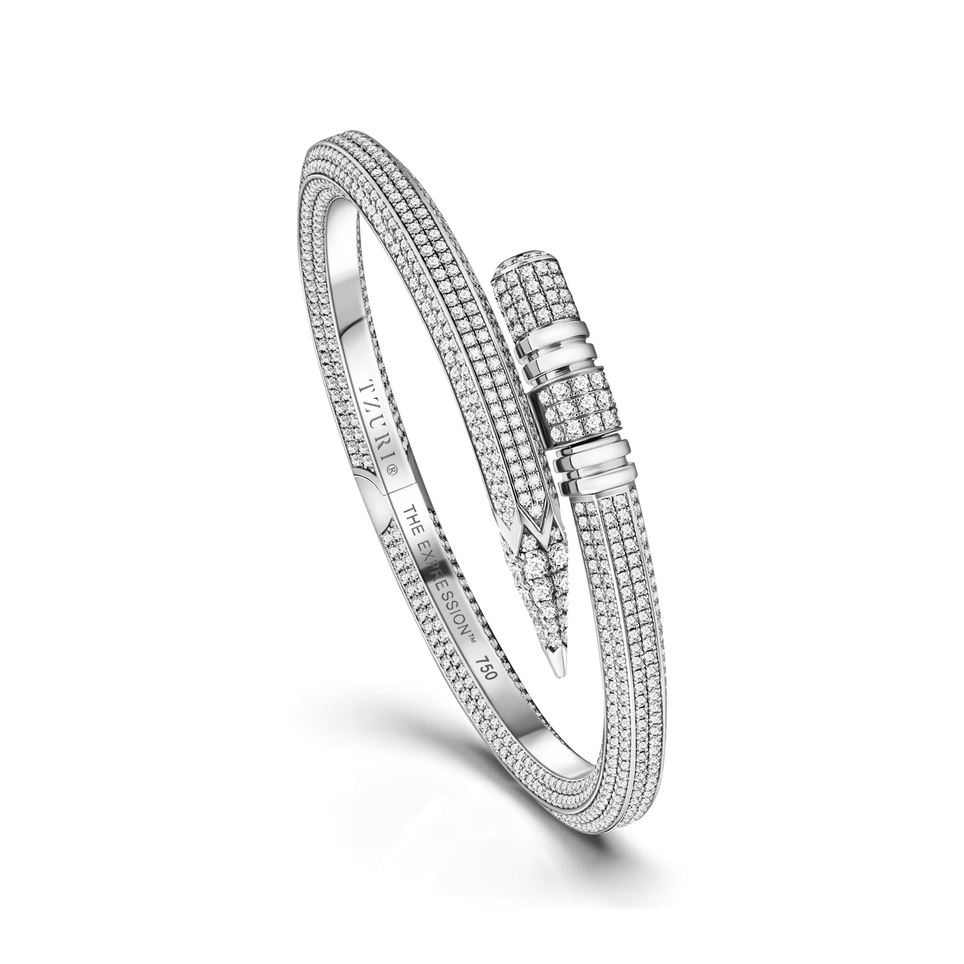 The Expression BraceletĀ® Midi Bling Bling, fashioned from 18k gold and adorned with diamonds, presents a luxurious variant that serves as an exceptional investment piece to enhance evening attire.
