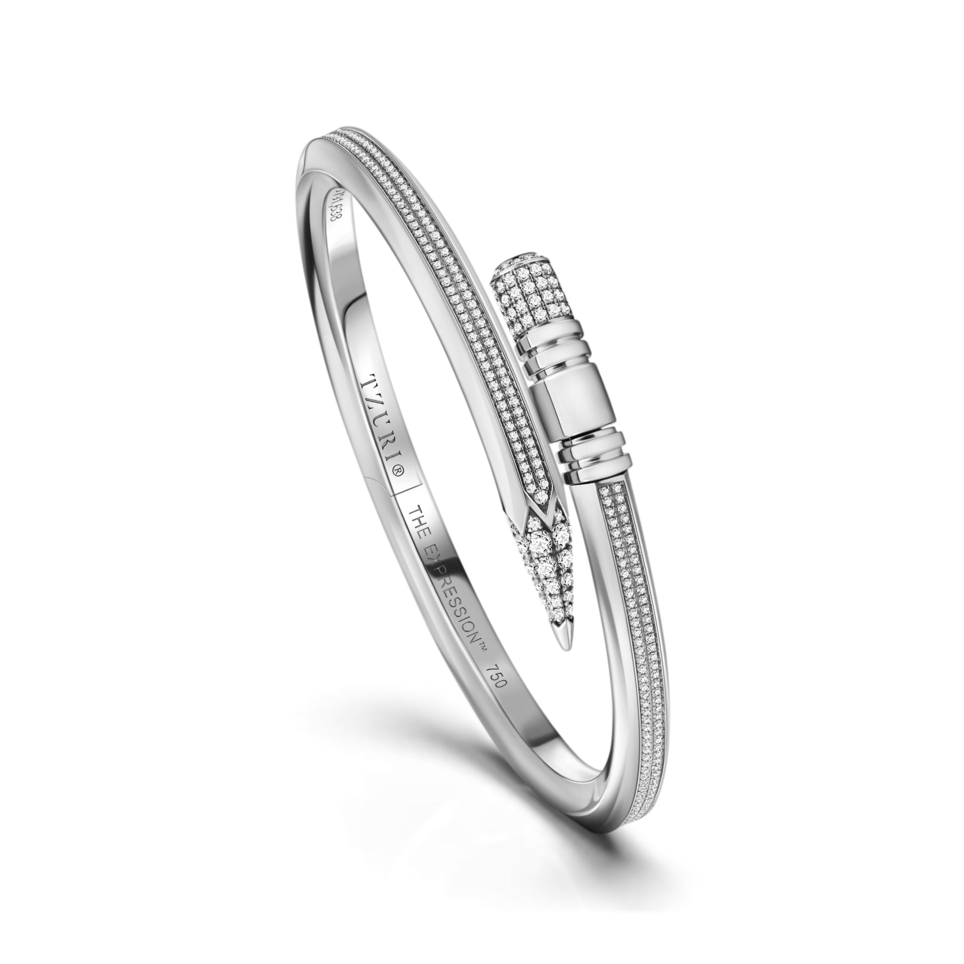 The Expression Bracelet® in 18k gold pave set with fine white diamonds on the top facet in addition to the eraser and the tip.